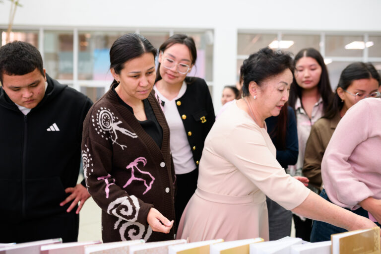 Көрмеге «Педагогика», «Филология және спорт», «Бизнес және туризм», «Құқық және халықаралық қатынастар», «Компьютерлік ғылымдар және жасанды интеллект» факультеттерінің оқу әдебиеттері мен 290-нан астам оқытушы-профессорлық құрам еңбектері қойылды.
